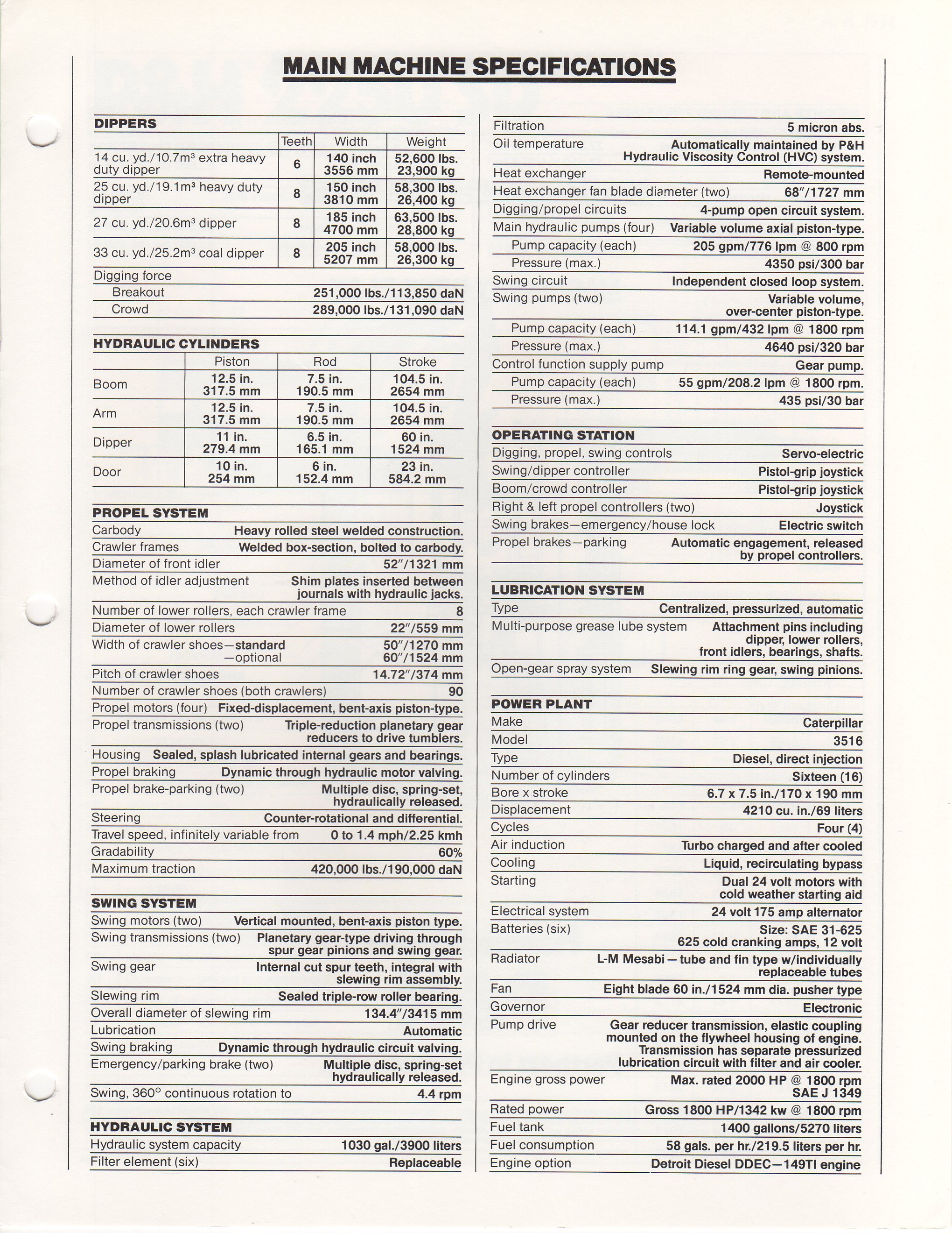 These machines have a rich history. They are P&H’s answer for the modern hydraulic shovel market. These machines are extremely well built and that eventually what lead to them being discontinued. The 2250 is one of the best built hydraulic shovels every created in their size range. P&H worked hard to make this machine easily moved yet heavy duty enough to last in heavy duty conditions. P&H was not willing to cheapen and lighten their machine in order to compete with the cheaper foreign machines that became popular in todays markets. This refusal to sell an inferior product lead them to discontinue their venture into hydraulic shovels of this class. Please reach out